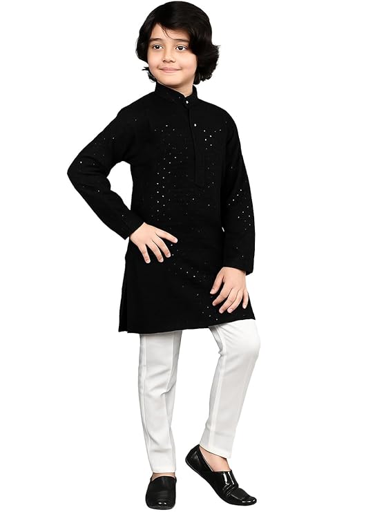 Give your little one a stylish traditional look with this elegant Boys Chikankari Kurta, featuring delicate handcrafted embroidery on a classic black base. Made from soft, comfortable fabric, it’s perfect for weddings, festivals, and special family occasions.